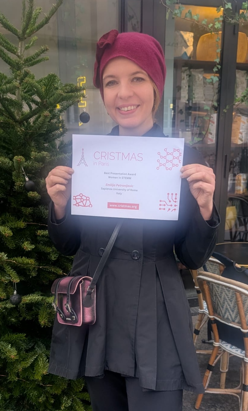 La dott.ssa Emilija Petronijevic, ricercatrice presso il Dipartimento di Scienze di Base e Applicate per l'Ingegneria ha vinto il premio per la migliore presentazione alla conferenza SNAIA 2024 Paris, Conference on Research and Innovations in Science and Technology of Materials,10-13 December 2024 · École Nationale Supérieure de Chimie de Paris, assegnato da Women in STEMM, per il talk: Photo-acoustic spectroscopy with widely tuneable laser: resonances, spatial absorption mapping and circular dichroism in nanostructures